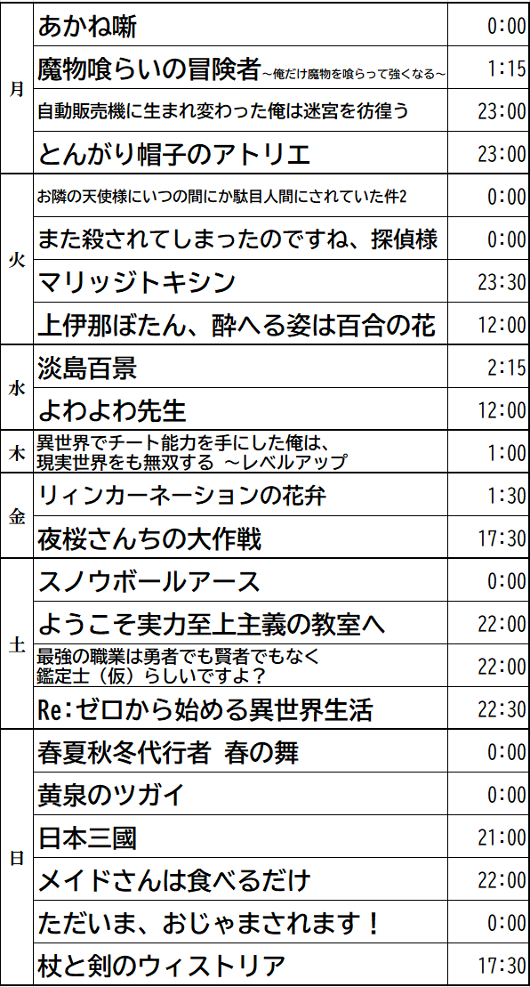 (これでも今期全体の約3分の1、アニメ業界すげーね!※こちらアマプラ更新時間記載)